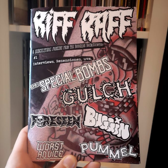Dass der erste Eindruck nicht täuscht, wird bereits nach den ersten Seiten klar. Sowohl inhaltlich als auch visuell hat das Riff Raff wirklich einiges zu bieten. Was mich fasziniert ist, dass man jeder der 52 vollfarbig gedruckten A5-Seiten anmerkt, wie viel Herzblut und Zeit Macher Tobi in das Zine gesteckt hat. Davon kann man einfach nur den Hut ziehen – von Fans für Fans, genau deshalb sind Fanzines entstanden und auch in Zeiten von Social Media noch absolut relevantDie Interviews wechseln zwischen Englisch und Deutsch. Im Gespräch hatte das Riff Raff Zine Gulch, Pummel, The Special, Bombs. Zusätzlich zu den Band-Interviews gibt es auch ein lesenswertes mit Tattoowiererin Hilde Neunteufel.