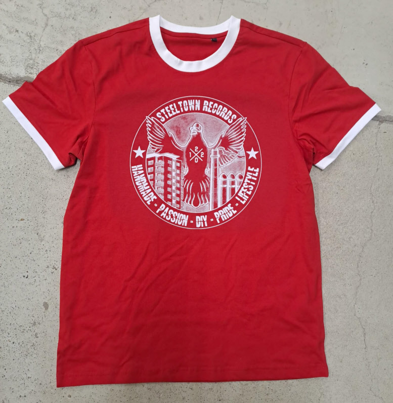 << Zurück Steeltown Records - 1220 Subkultur Wappen Eisenhüttenstadt T-Shirt (rot, S-3XL)