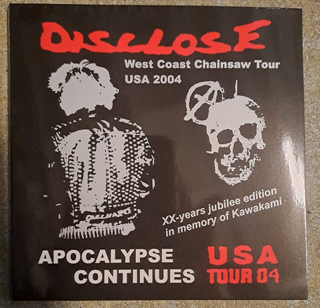 Und hier ein weiterer Nippon-Bretterknaller aus der Kategorie „DISCHARGE-Clones from outer east“ aka D-Beat! DISCLOSE produzierten den Sound, den DISCHARGE hätten spielen sollen, aber nicht mehr wollten. Die Fortführung von „ Hear nothing..“ in Lichtgeschwindigkeit. Bis dato unveröffentlichte Aufnahmen von ihrer 2004er Westcoast-Tour als Gedenkveranstaltung für Sänger Kawakami (starb an einer Alkoholvergiftung). Insgesamt 33 Kreissägereien vom Feinsten. Wo „Chainsaw tour“ draufsteht, ist auch Chainsaw drin. Ebenfalls limitiert auf 300 Exemplare.