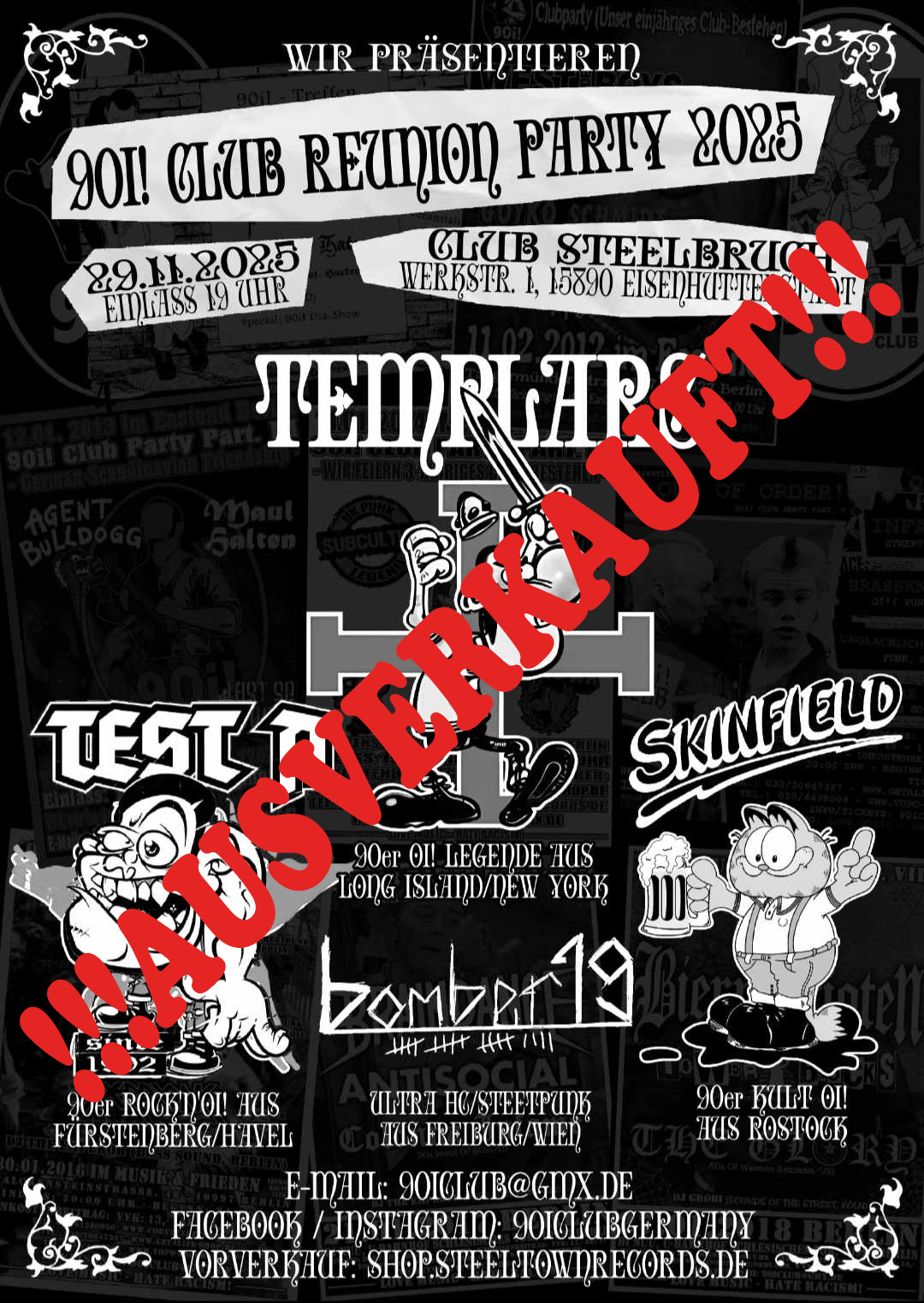 << Zurück 29.11.25 - Templars + Skinfield + Test A + Bomber 19 LIVE @Steelbruch / Eisenhüttenstadt !!!AUSVERKAUFT!!!